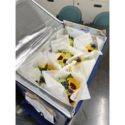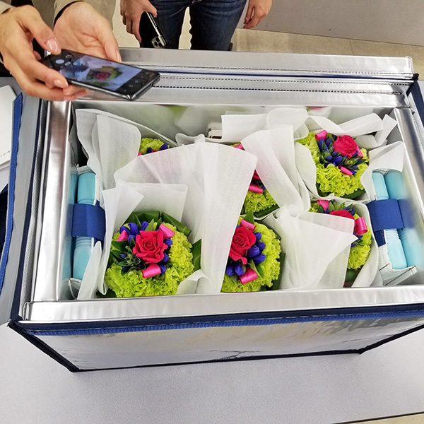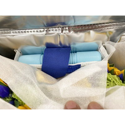 ブーケの輸送については、2つの輸送箱を使用しての実証を行ったが、ネオジッパーよりもネオシールドタイプの方が低温に保つ力が強く、花材の持ちからしても低温で輸送する方が長持ちしている。常温トラックでの輸送であればなおさらネオシールドタイプの活用が進められる。