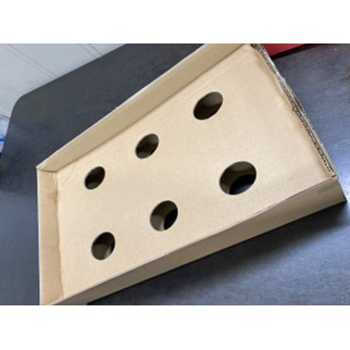 保冷ケースに花束をセットする為の段ボールの中敷き、畜冷材が花材に直接触れない為の対策を講じた