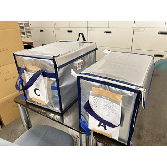 保冷施設での制作、専用保冷ケースへの梱包後は、常温車両にて需要者の場所にて経過観察を実施
