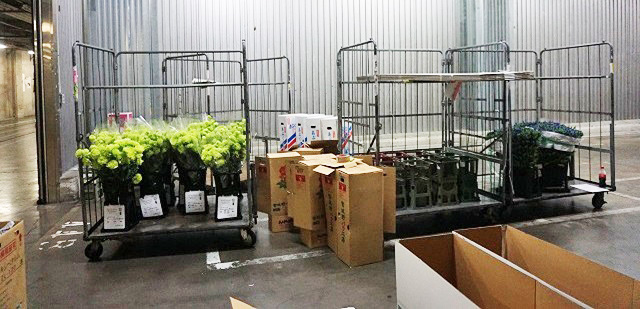 冷蔵専用車両で各ストックポイントで集荷した花材を納入
