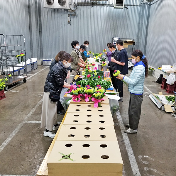 令和2年度の品質テストについては、TOKYO2020オリンピック・パラリンピックが延期となった事から、生産から流通、ブーケ制作(小売店)、ダミー競技場(実需者)への配送、実需者が受け取ってからの経過観察と、暑熱下の国内花き流通実証として実施。
