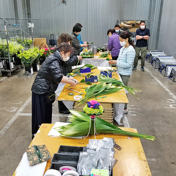 今回は、ダミーのビクトリーブーケ制作として、保冷施設内で制作梱包を実施